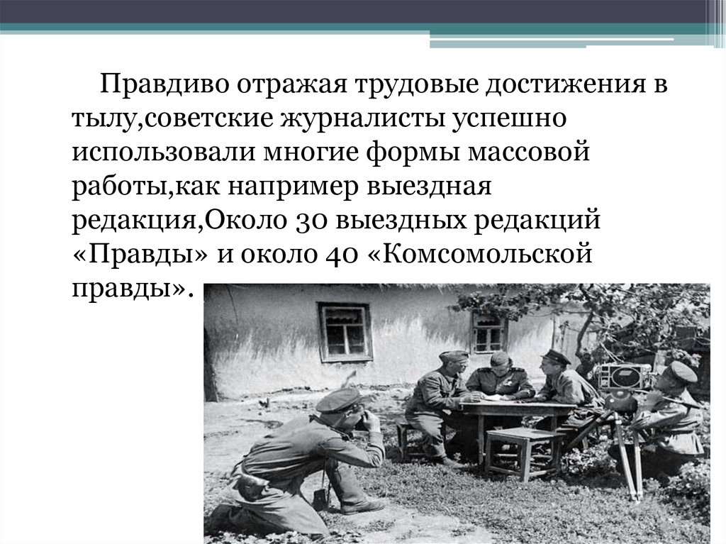 Правдиво отражая трудовые достижения втылу,советские журналисты успешно