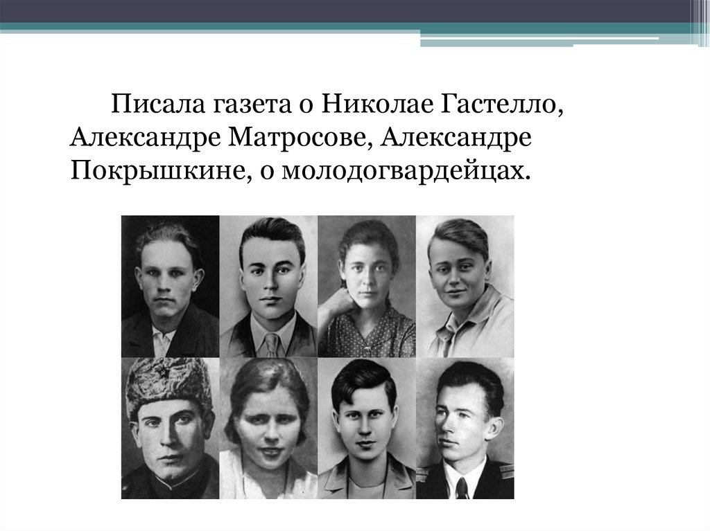 Писала газета о Николае Гастелло,Александре Матросове, Александре