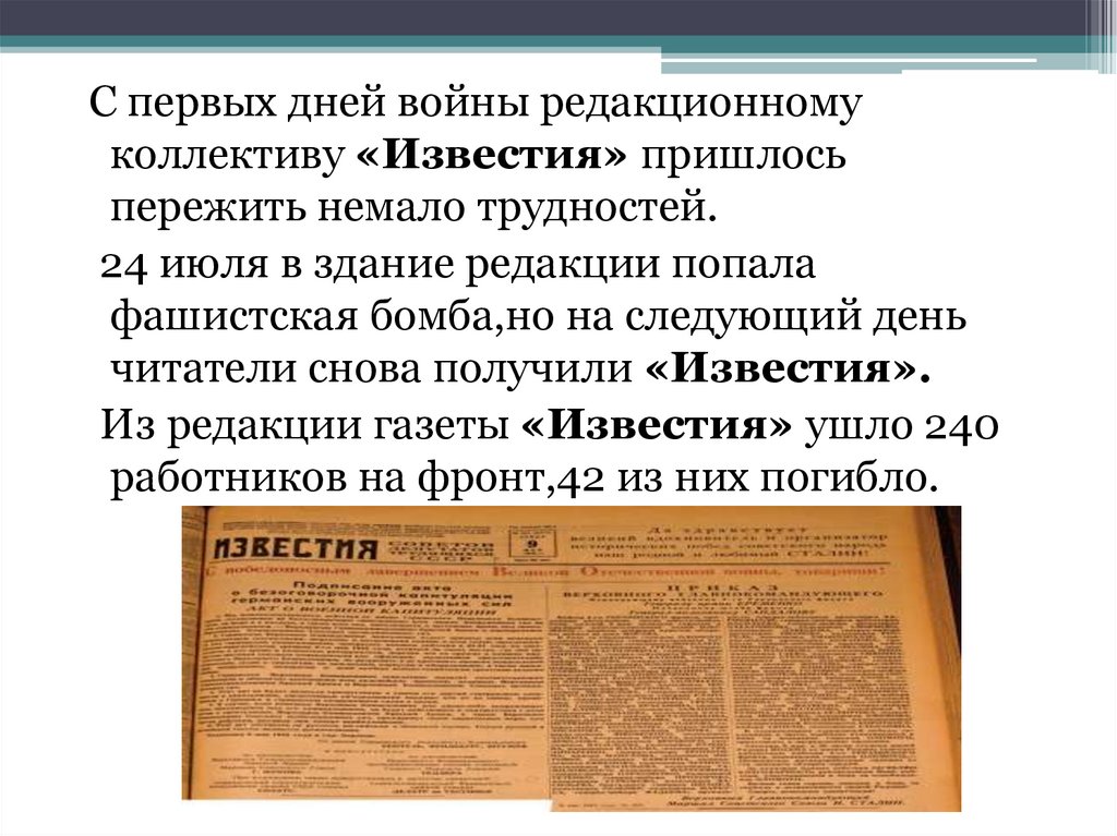 С первых дней войны редакционномуколлективу «Известия» пришлось