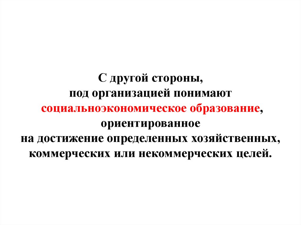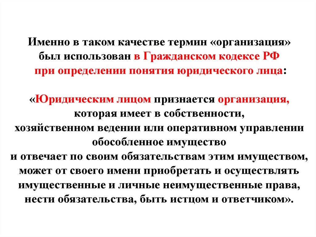 Именно в таком качестве термин «организация»был использован в Гражданском кодексе РФ