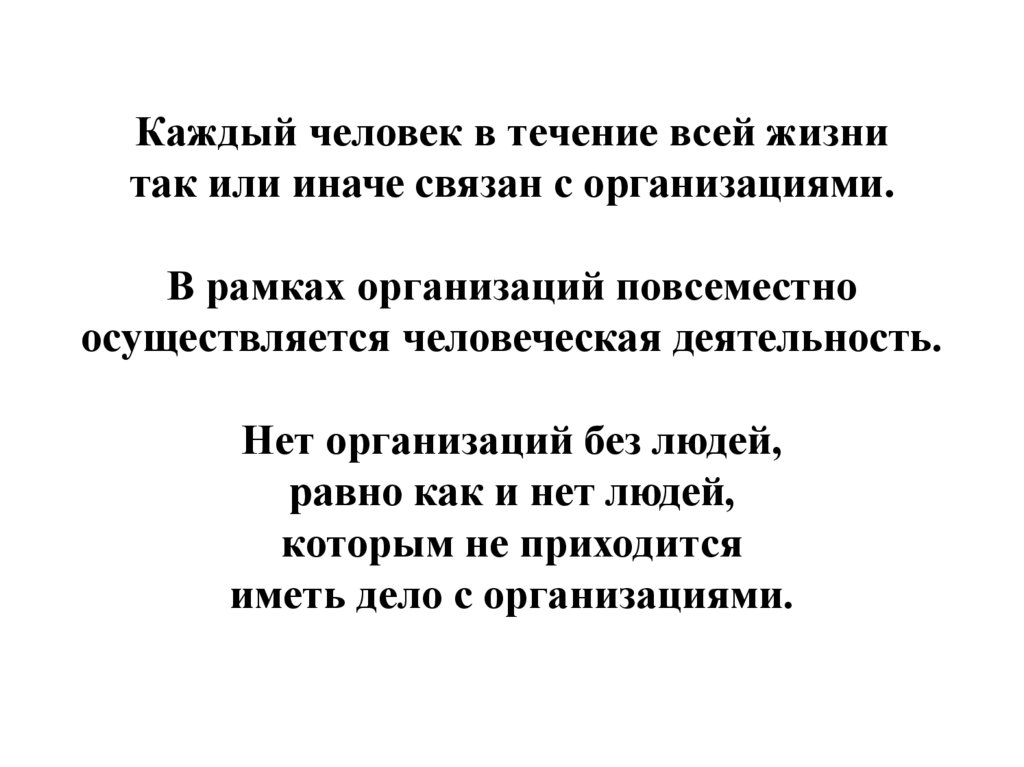Каждый человек в течение всей жизнитак или иначе связан с организациями.