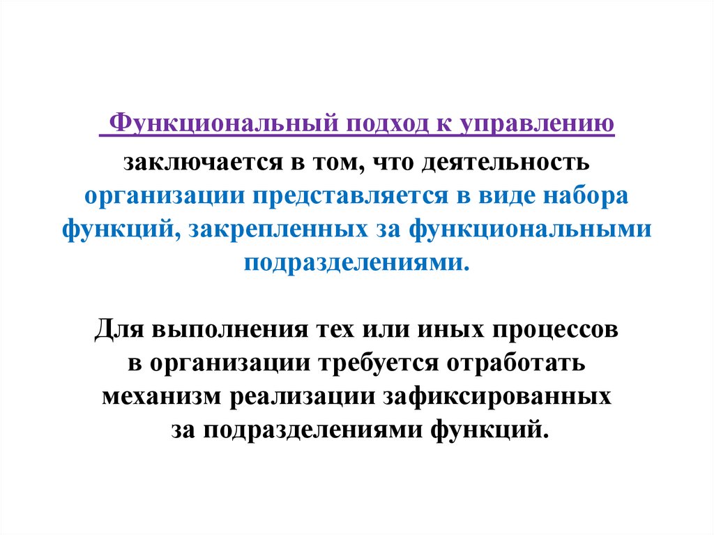 Функциональный подход к управлениюзаключается в том, что деятельность