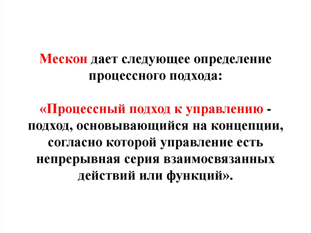 «Процессный подход к управлению подход, основывающийся на концепции,