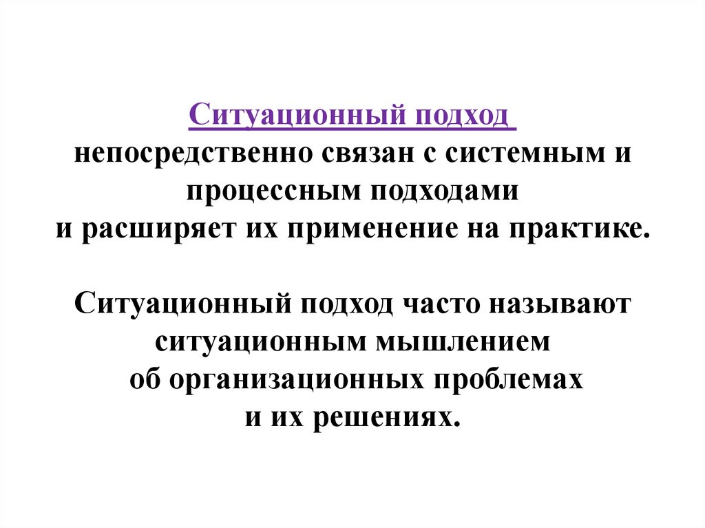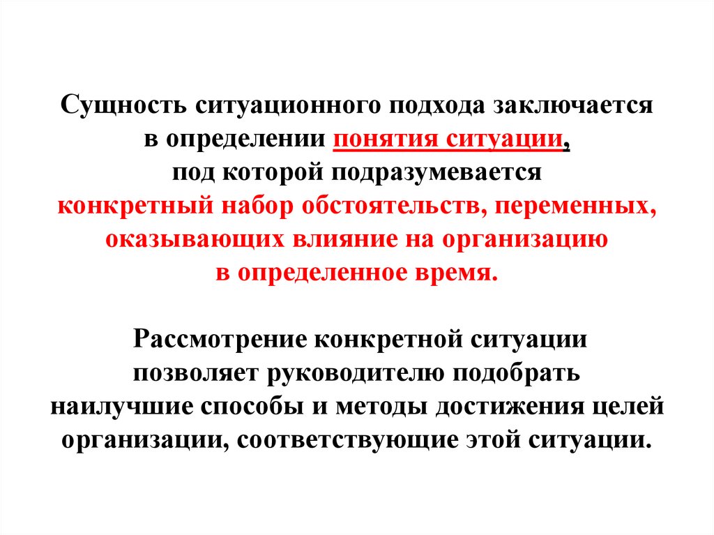 Сущность ситуационного подхода заключаетсяв определении понятия ситуации,