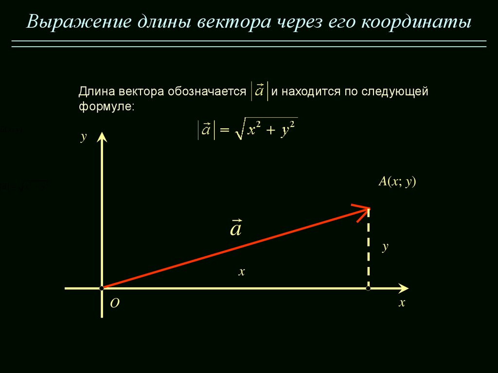 Выражение длины вектора через его координаты