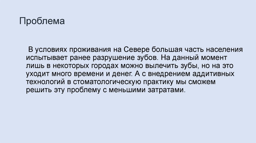 ПроблемаВ условиях проживания на Севере большая часть населения