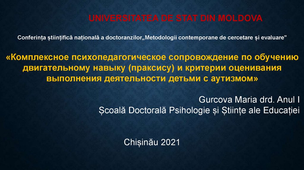 UNIVERSITATEA DE STAT DIN MOLDOVAConferința științifică națională a doctoranzilor„Metodologii contemporane de cercetare și evaluare”