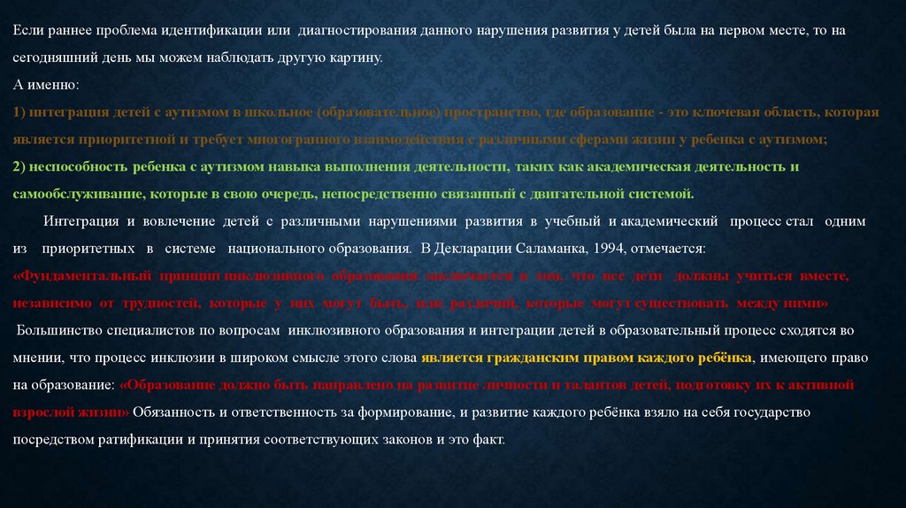 приоритетных в системе национального образования. В Декларации Саламанка, 1994, отмечается: