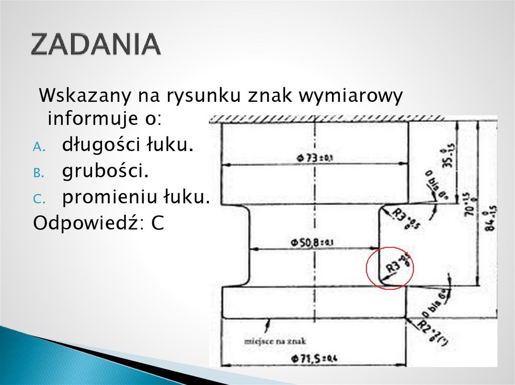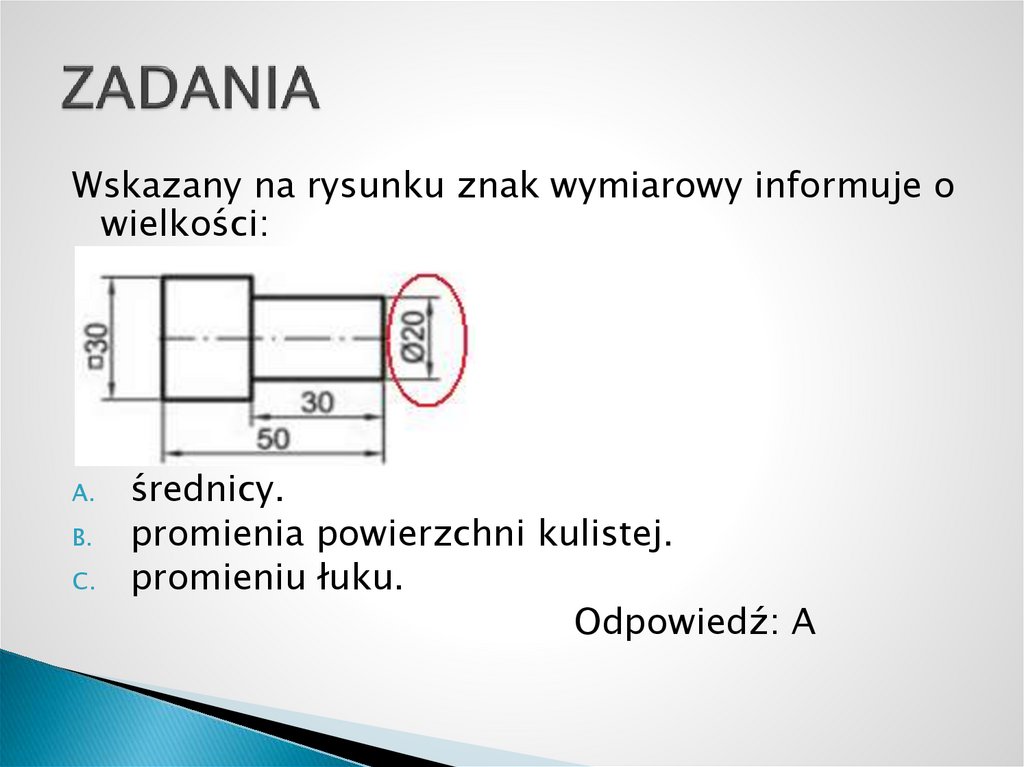 Wskazany na rysunku znak wymiarowy informuje owielkości: