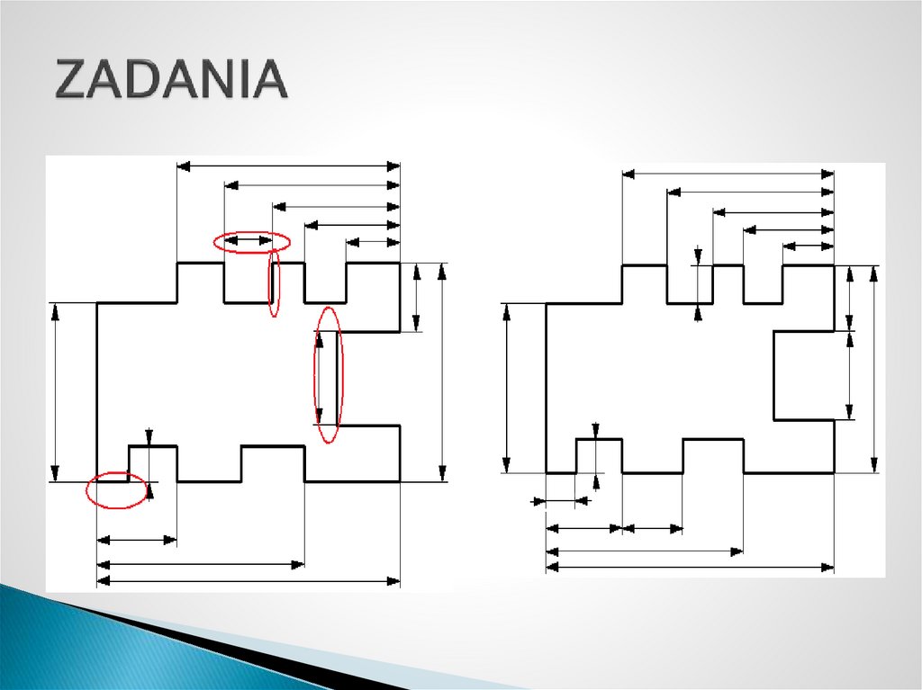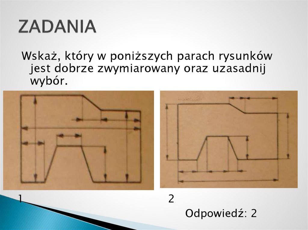 Wskaż, który w poniższych parach rysunkówjest dobrze zwymiarowany oraz uzasadnij