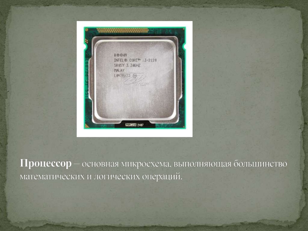 Основная микросхема компьютера, в которой ипроизводятся все вычисления. На процессоре
