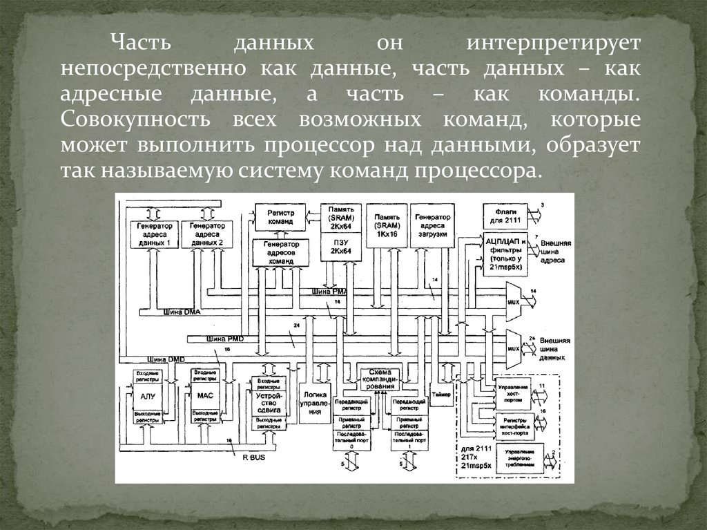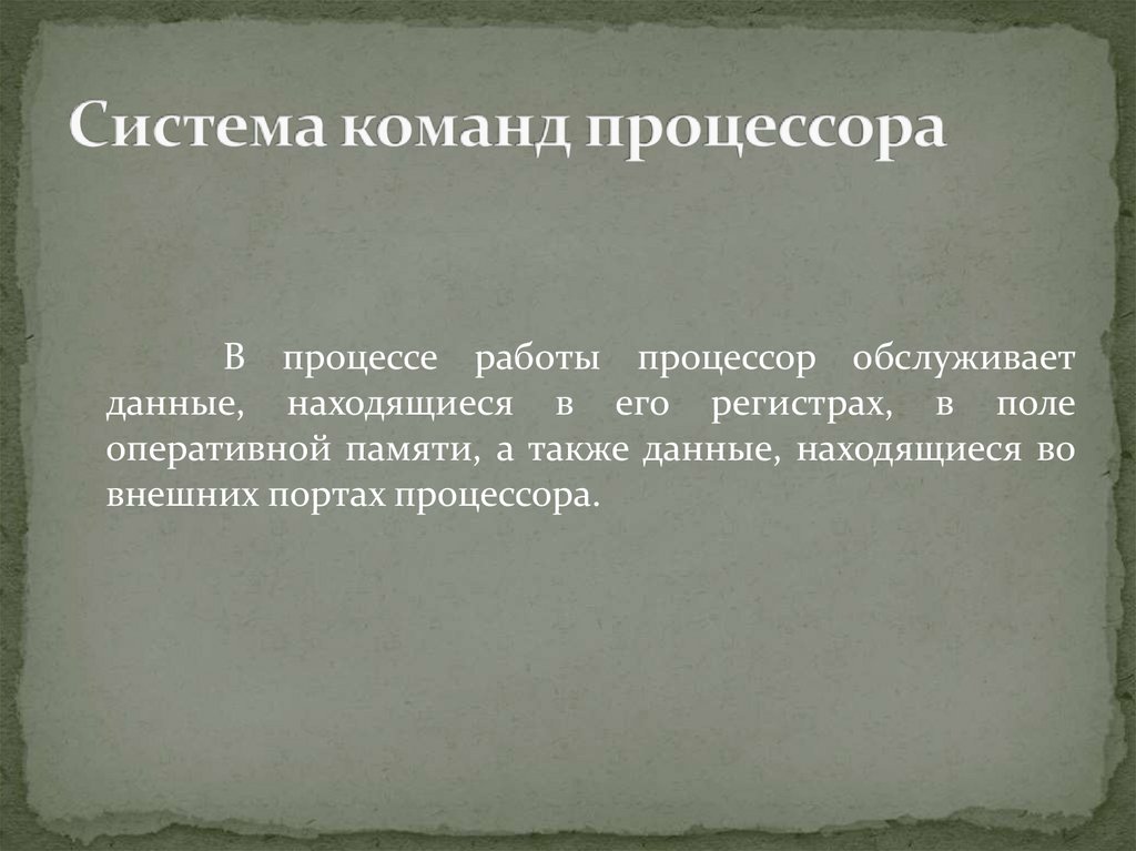 В процессе работы процессор обслуживаетданные, находящиеся в его регистрах, в поле