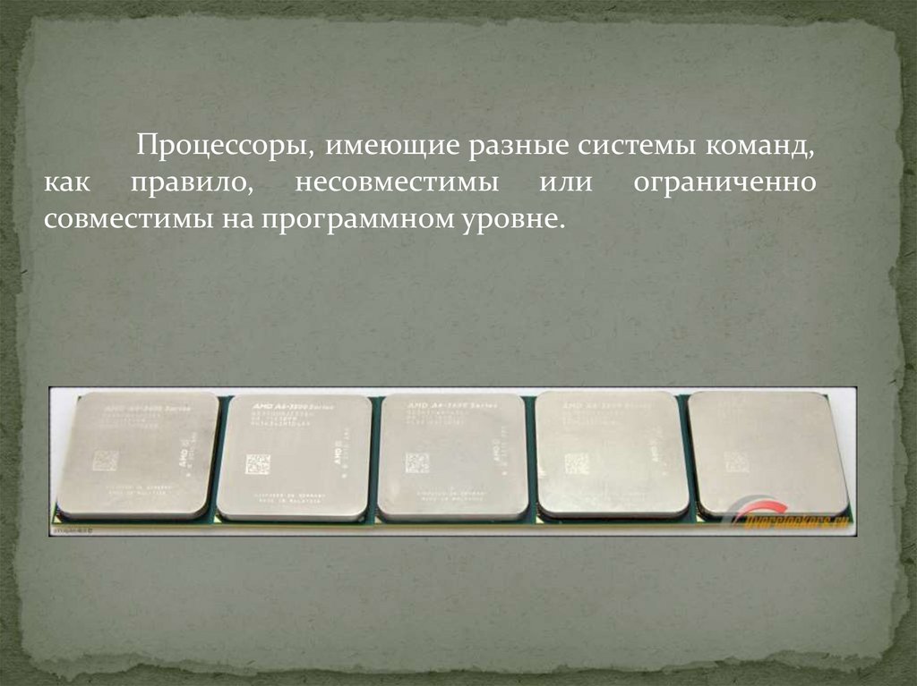 Процессоры, имеющие разные системы команд,как правило, несовместимы или ограниченно