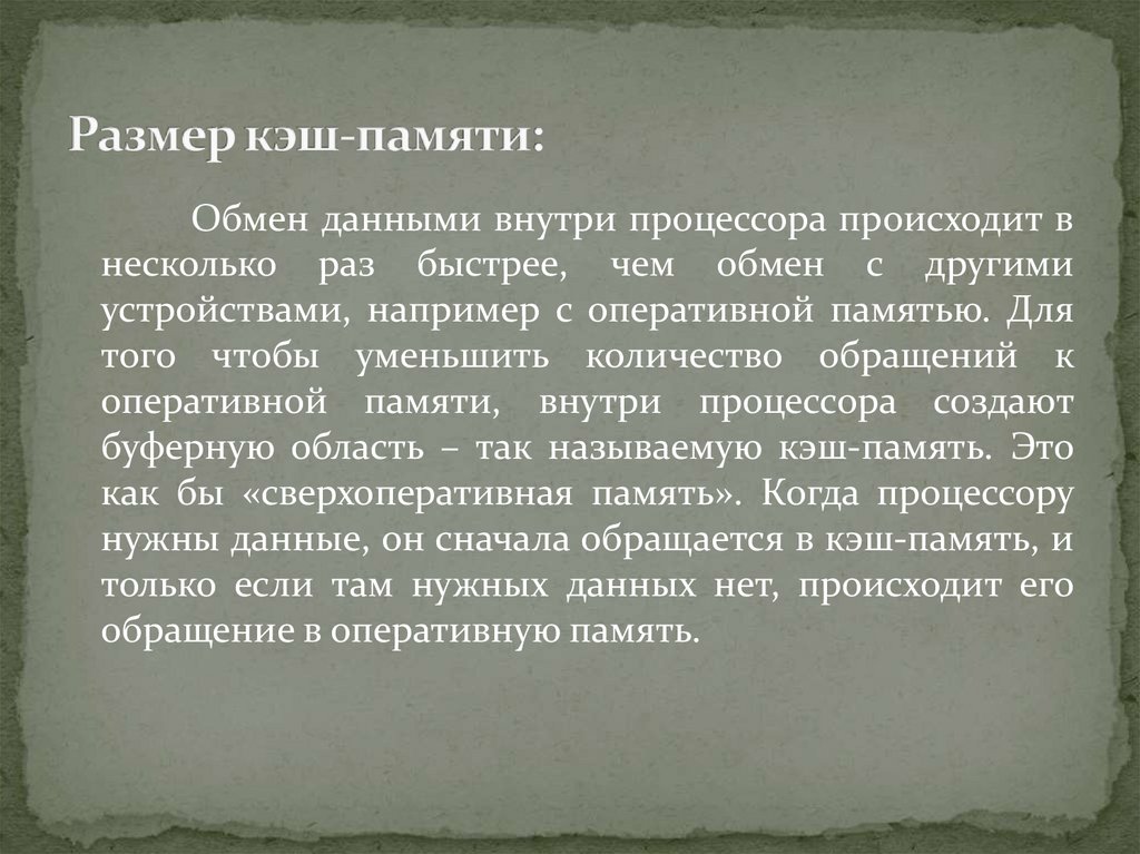 Обмен данными внутри процессора происходит внесколько раз быстрее, чем обмен с другими