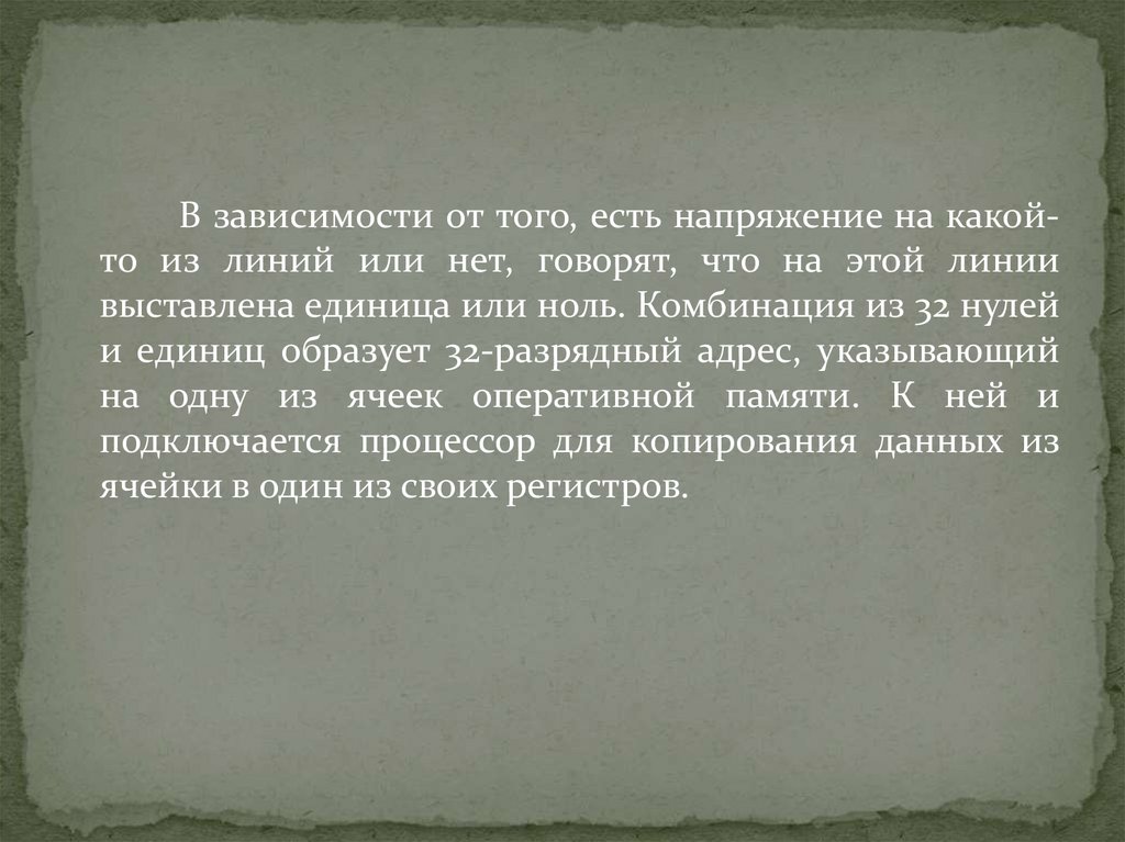 В зависимости от того, есть напряжение на какойто из линий или нет, говорят, что на этой линиивыставлена единица или ноль. Комбинация из 32 нулей