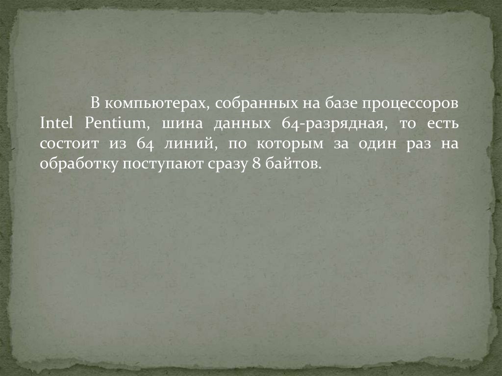 В компьютерах, собранных на базе процессоровIntel Pentium, шина данных 64-разрядная, то есть