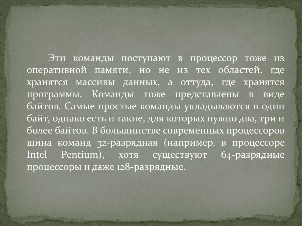 Эти команды поступают в процессор тоже изоперативной памяти, но не из тех областей, где