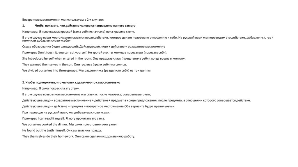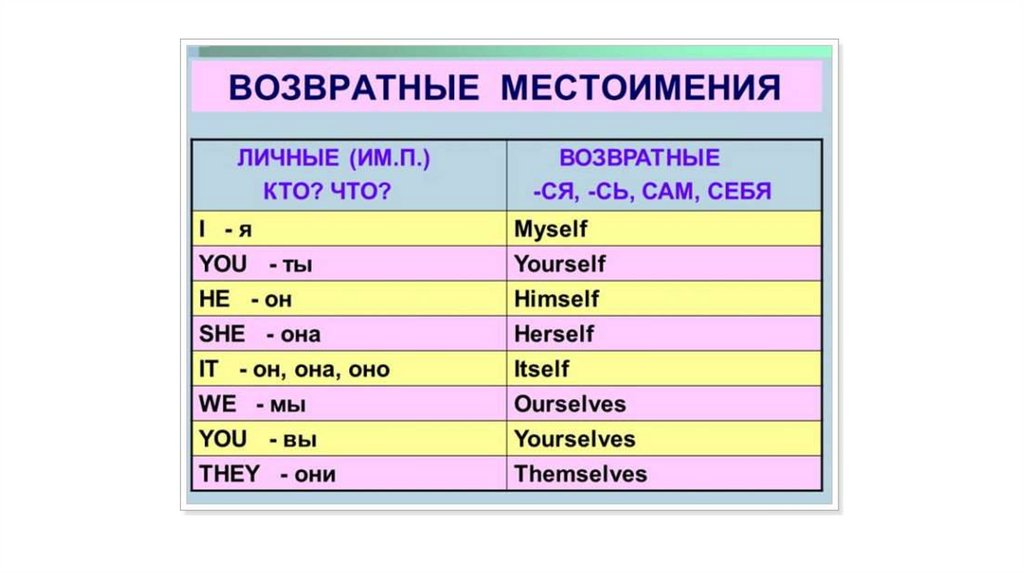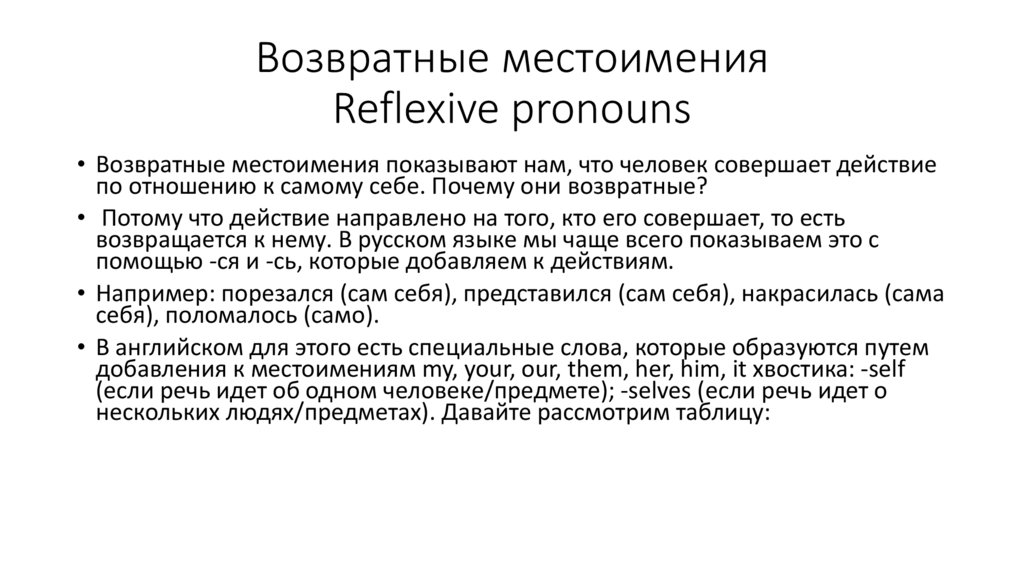 • Возвратные местоимения показывают нам, что человек совершает действие