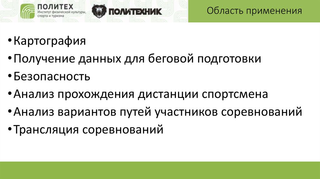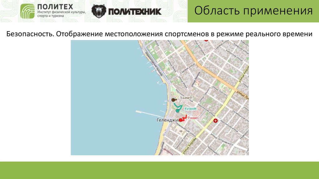 Область примененияБезопасность. Отображение местоположения спортсменов в режиме реального времени