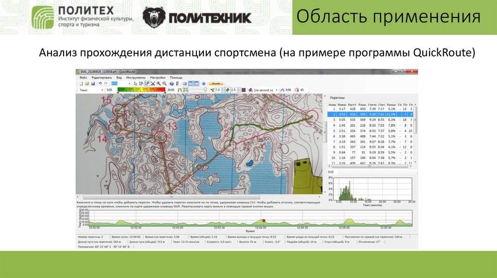 Область примененияАнализ прохождения дистанции спортсмена (на примере программы QuickRoute)