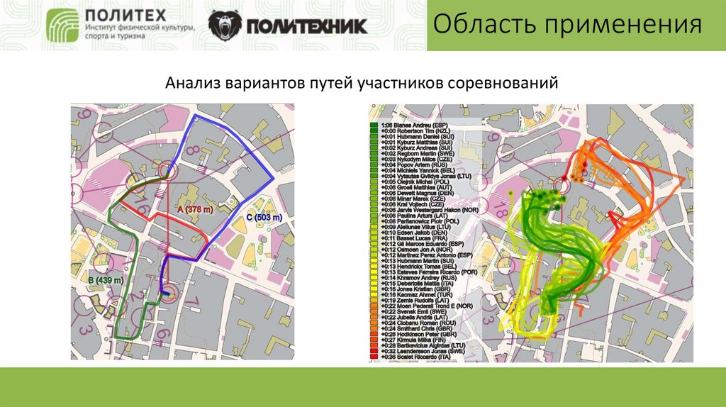 Область примененияАнализ вариантов путей участников соревнований