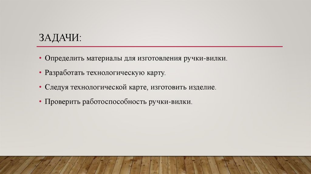 ЗАДАЧИ:• Определить материалы для изготовления ручки-вилки.