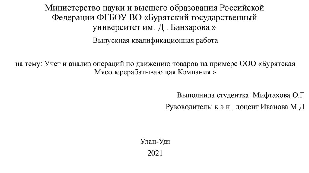 Министерство науки и высшего образования РоссийскойФедерации ФГБОУ ВО «Бурятский государственный