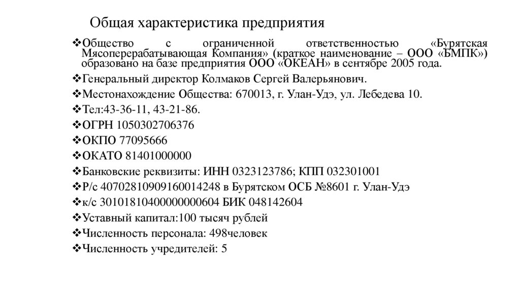 Общая характеристика предприятияОбщество