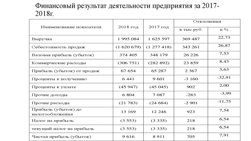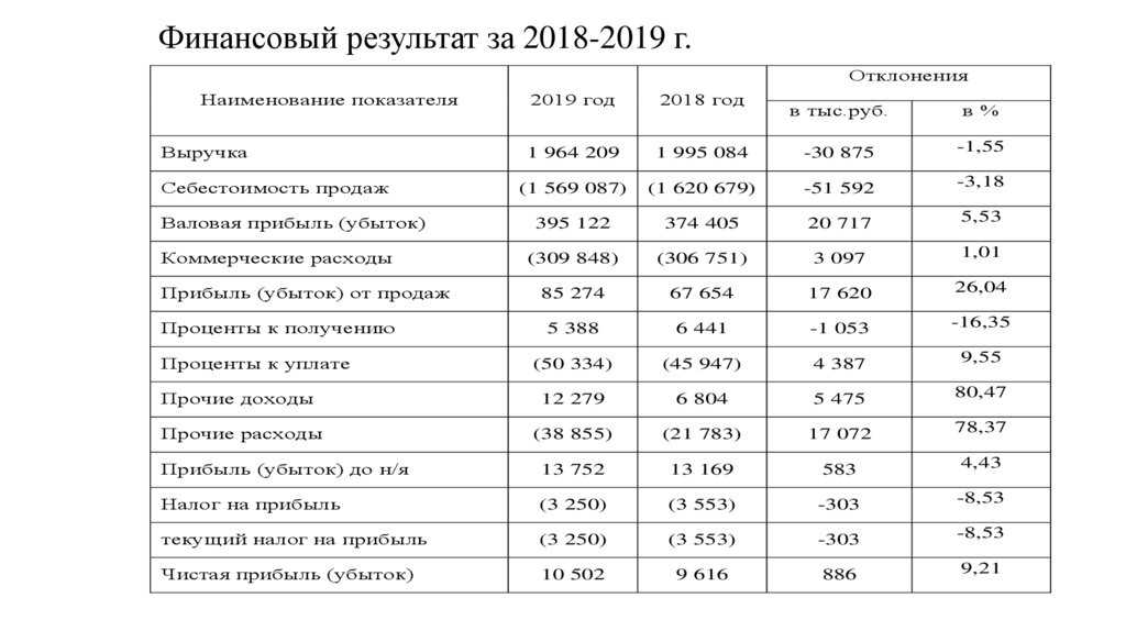 Финансовый результат за 2018-2019 г.Отклонения