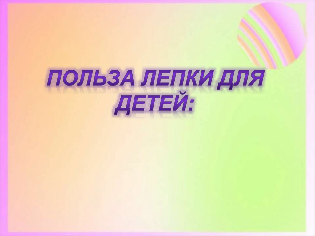 Лепка – самый осязаемый вид художественноготворчества. Ребёнок не только видит то, что создал, но
