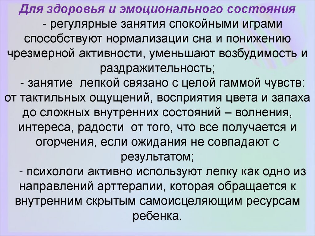 Для здоровья и эмоционального состояния- регулярные занятия спокойными играми