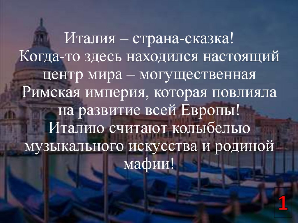 Италия – страна-сказка!Когда-то здесь находился настоящий
