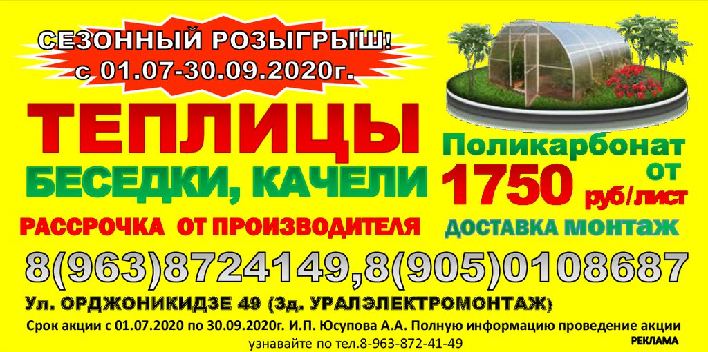 Срок акции с 01.07.2020 по 30.09.2020г. И.П. Юсупова А.А. Полную информацию проведение акции