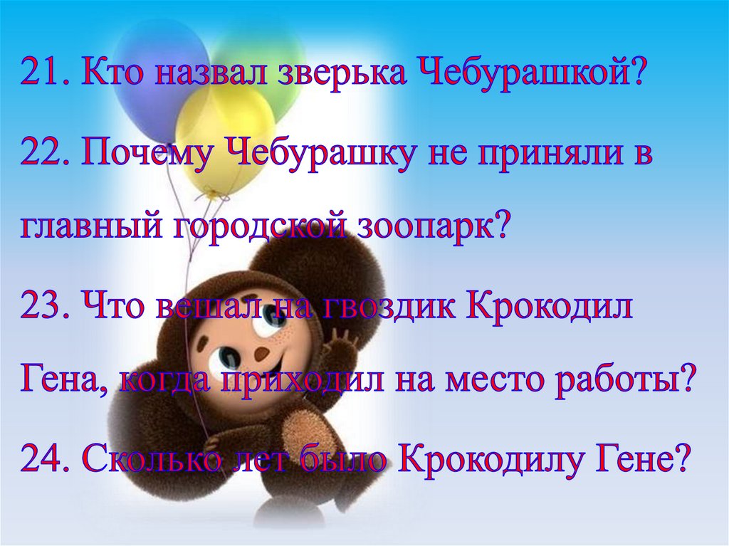 Крокодил Гена и Чебурашка. Интерактивная викторина