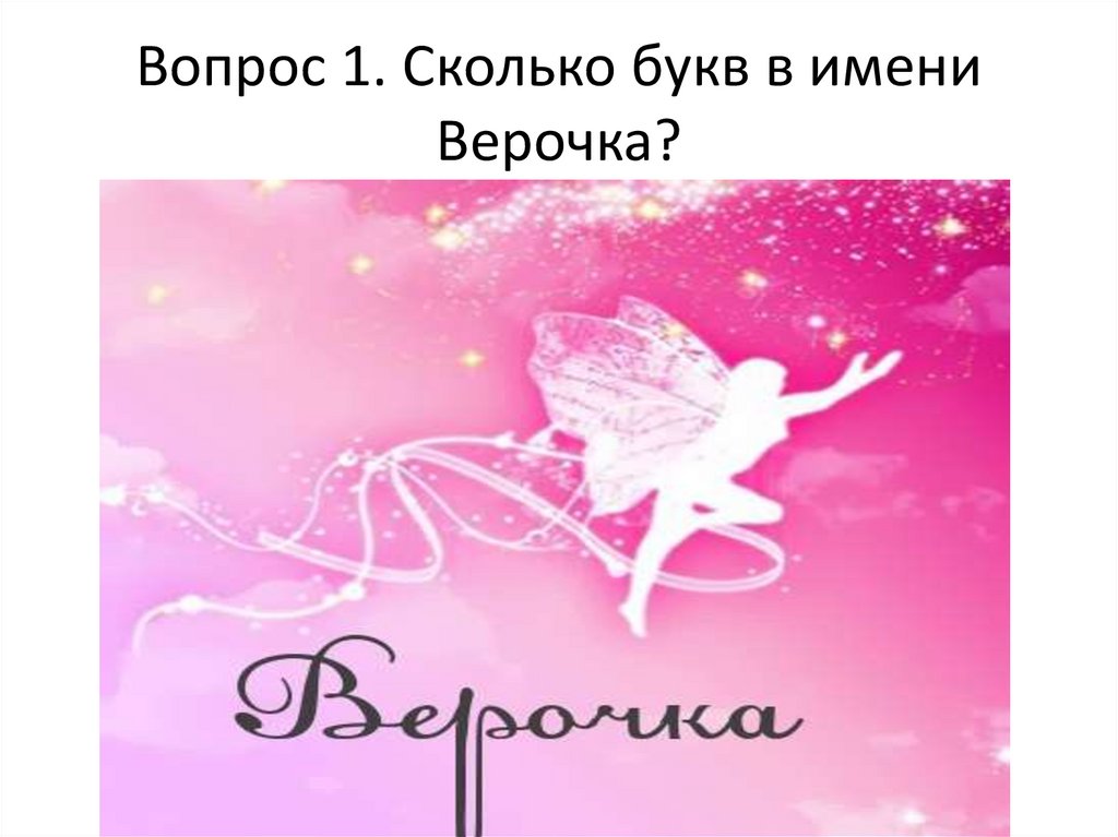 Вопрос 1. Сколько букв в имениВерочка?