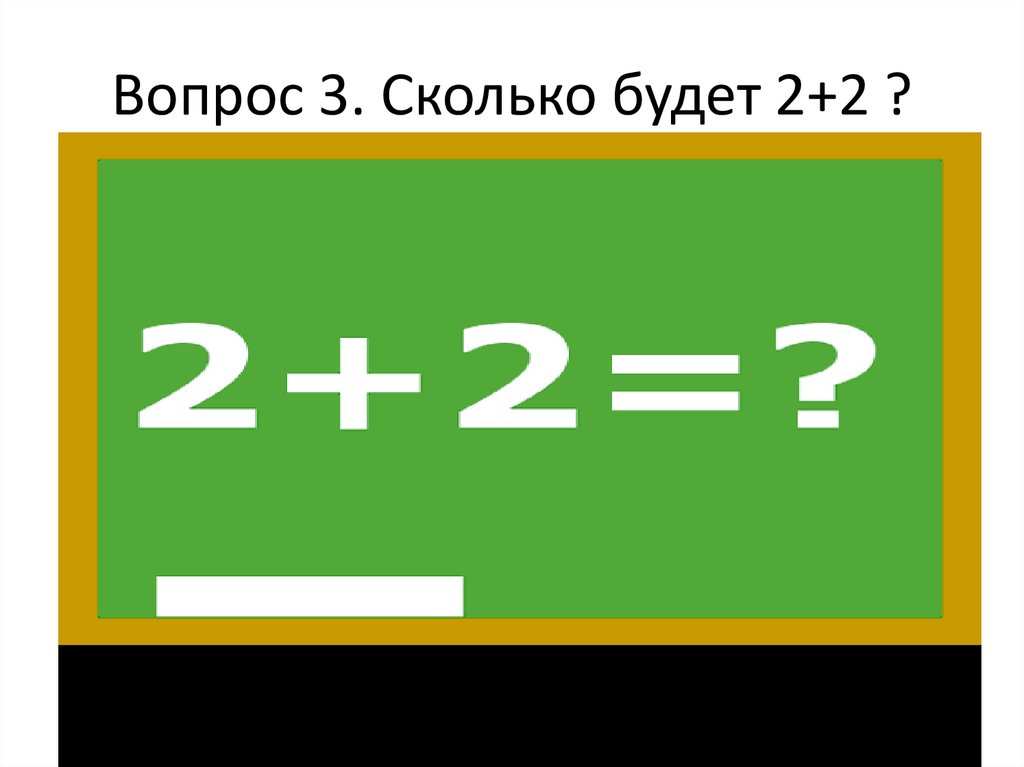 Вопрос 3. Сколько будет 2+2 ?4.