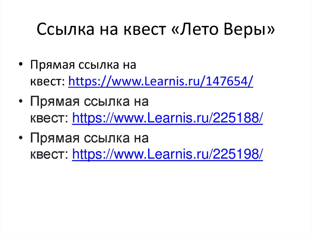 Ссылка на квест «Лето Веры»• Прямая ссылка на