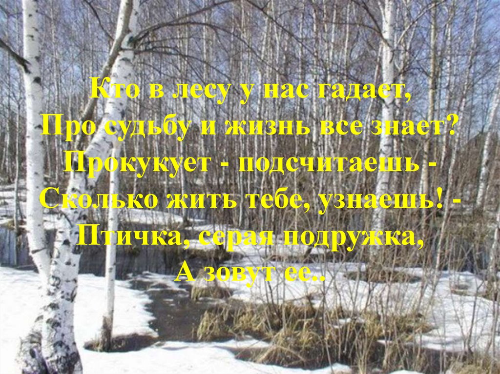 Прокукует - подсчитаешь Сколько жить тебе, узнаешь! Птичка, серая подружка,