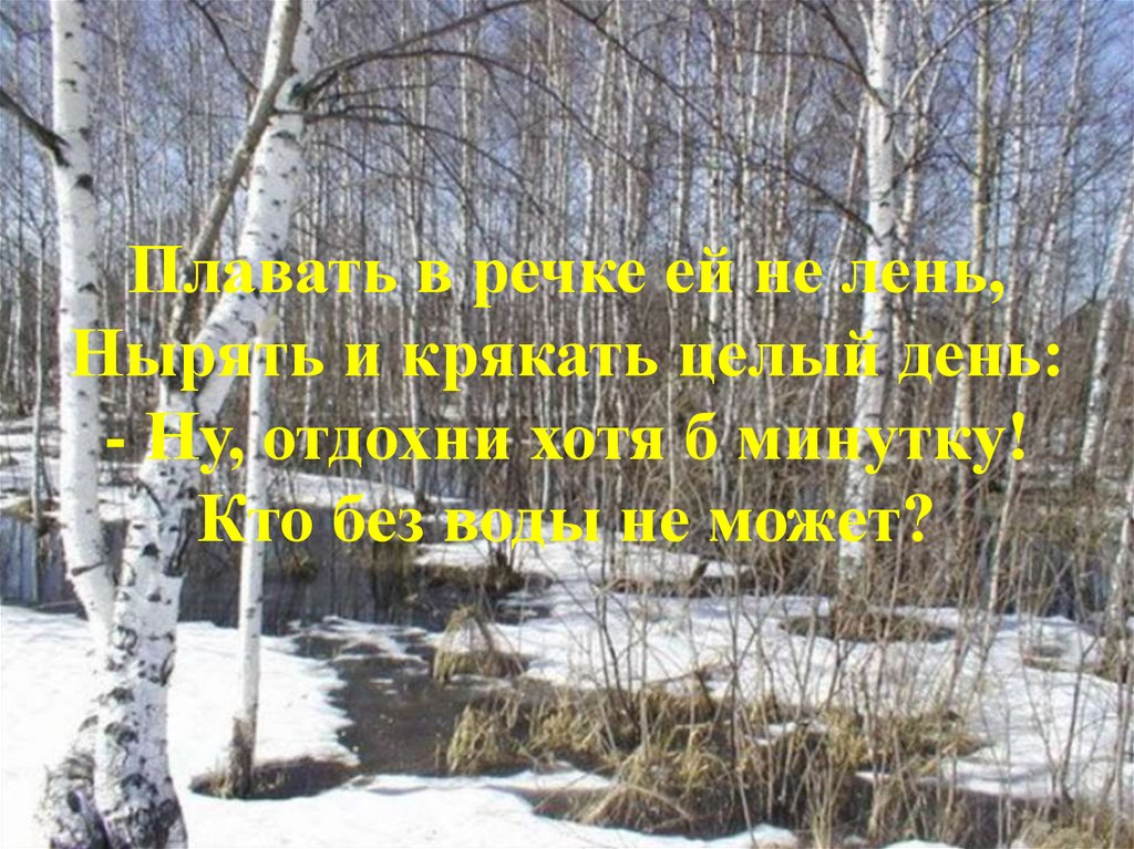 Плавать в речке ей не лень,Нырять и крякать целый день: