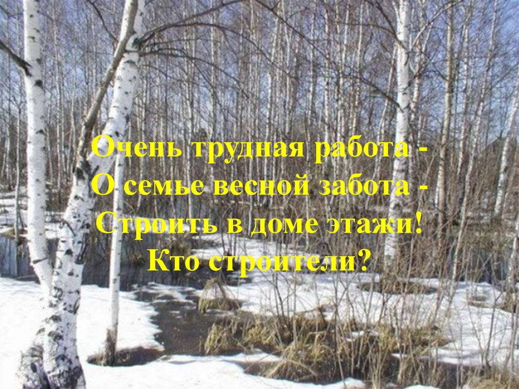 Очень трудная работа О семье весной забота Строить в доме этажи!Кто строители?