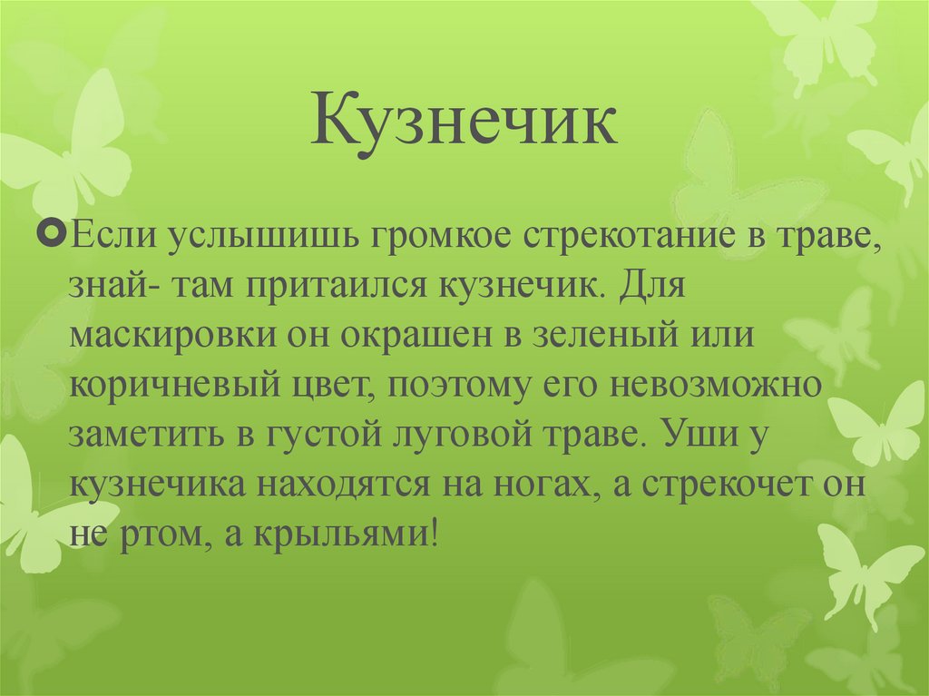 КузнечикЕсли услышишь громкое стрекотание в траве,
