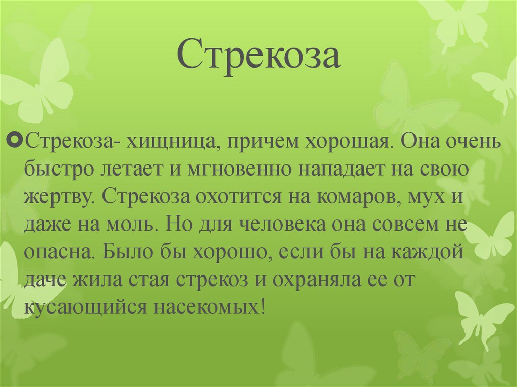 СтрекозаСтрекоза- хищница, причем хорошая. Она очень