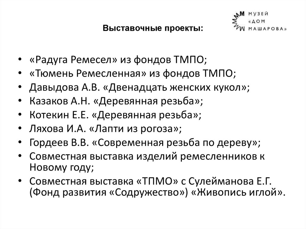 Выставочные проекты:«Радуга Ремесел» из фондов ТМПО;