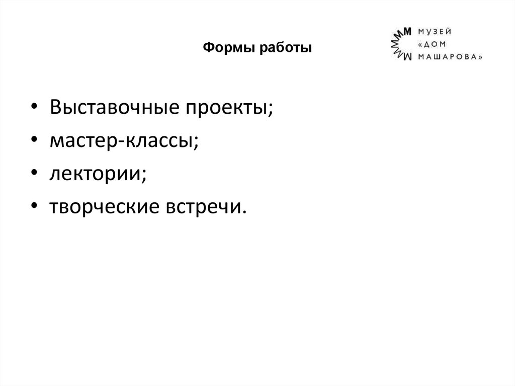 Формы работыВыставочные проекты;