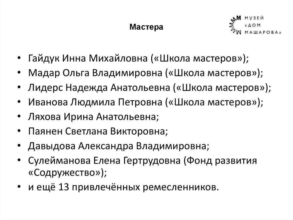 • и ещё 13 привлечённых ремесленников.