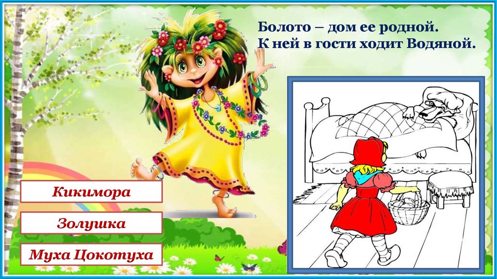 Болото – дом ее родной.К ней в гости ходит Водяной.