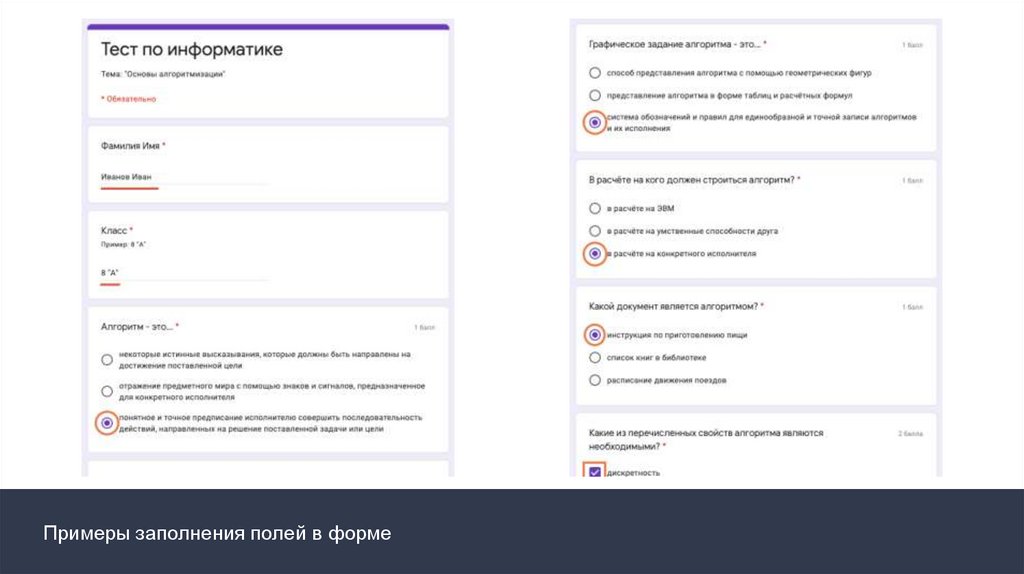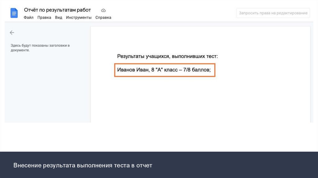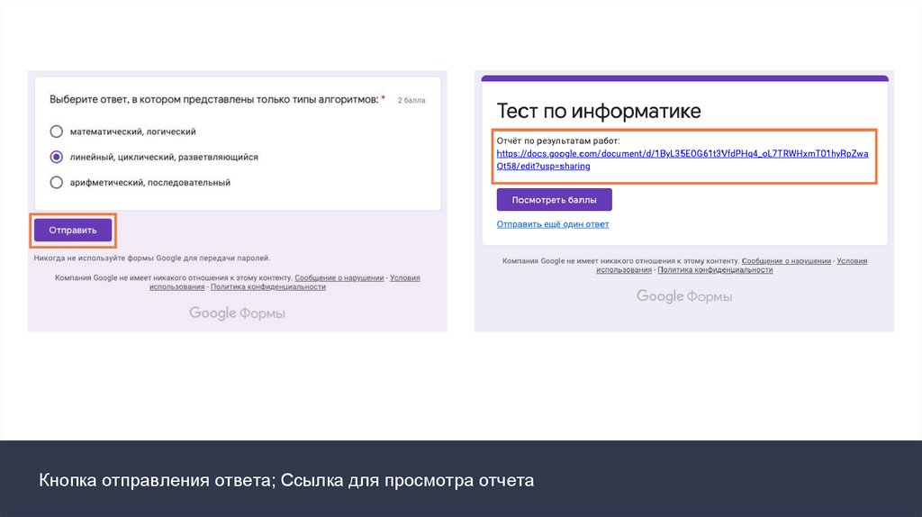 Кнопка отправления ответа; Ссылка для просмотра отчета