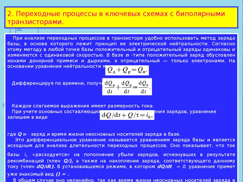 рассасывания оставшихся в базе носителей происходит окончание переходного