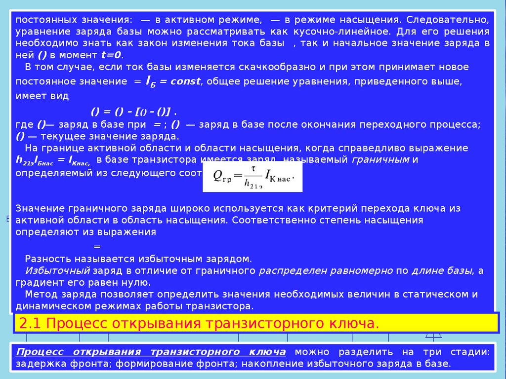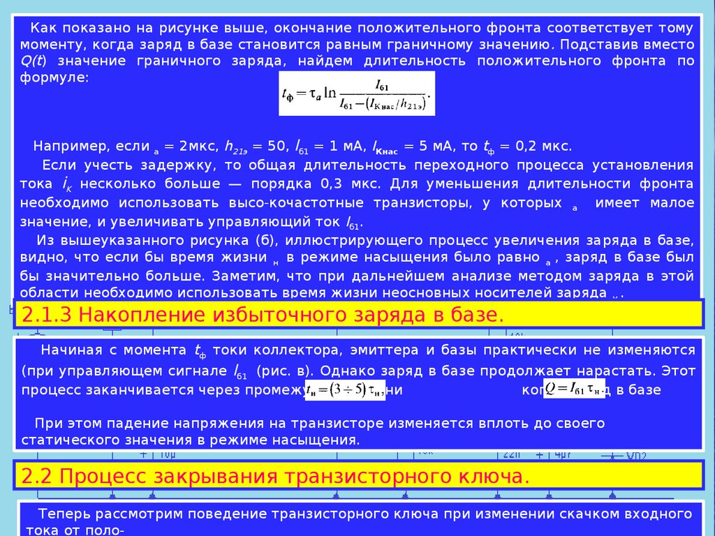 С момента открытия диода ток управления ключом замыкается на коллектор, чтоприводит к уменьшению тока базы приблизительно в 1+ раз. В итоге избыточный заряд,