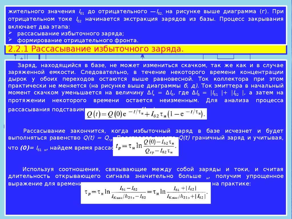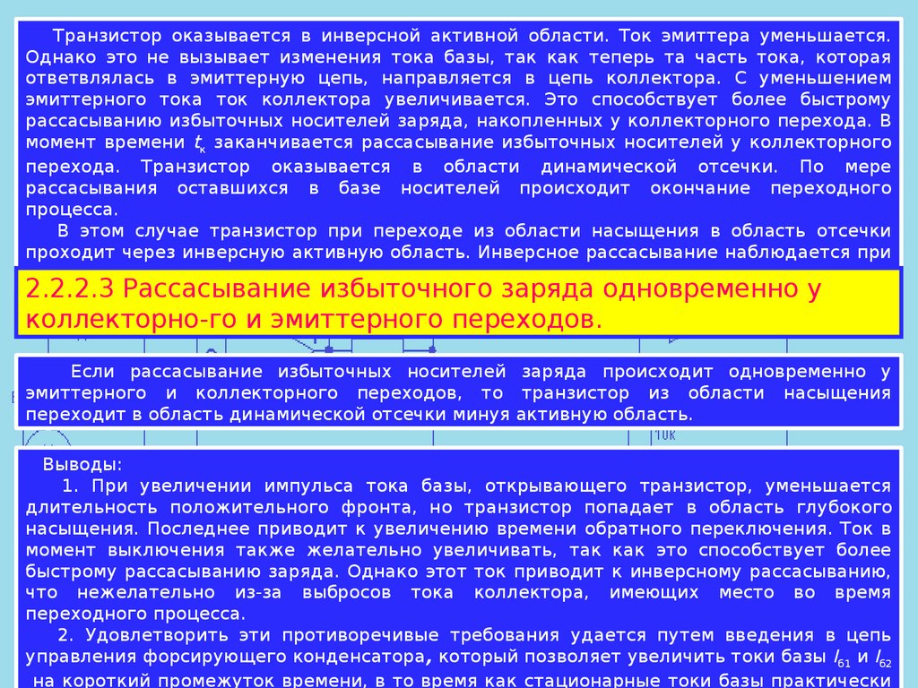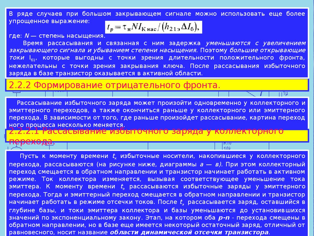 рассасыванию избыточных носителей заряда, накопленных у коллекторного перехода. В